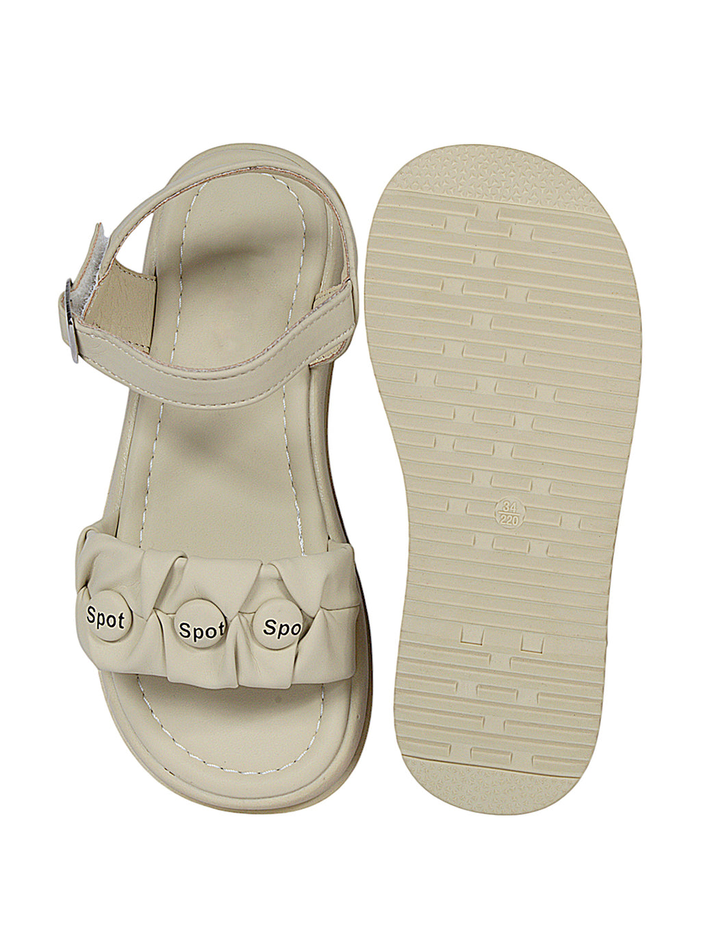 Beige Green Synthetic Leather Buckle Sandals For Kids-Girls (TC-B08-BEIGRN)