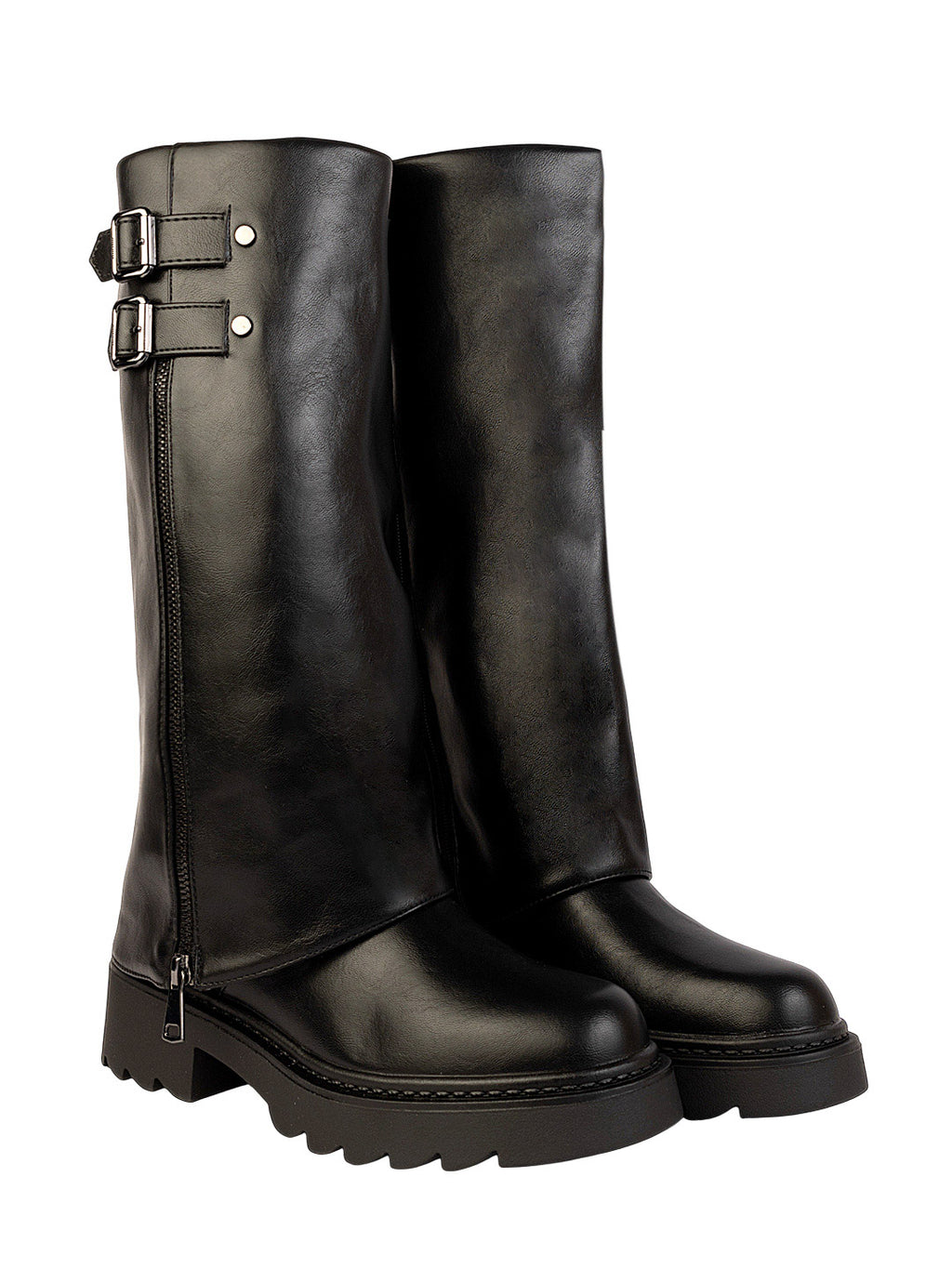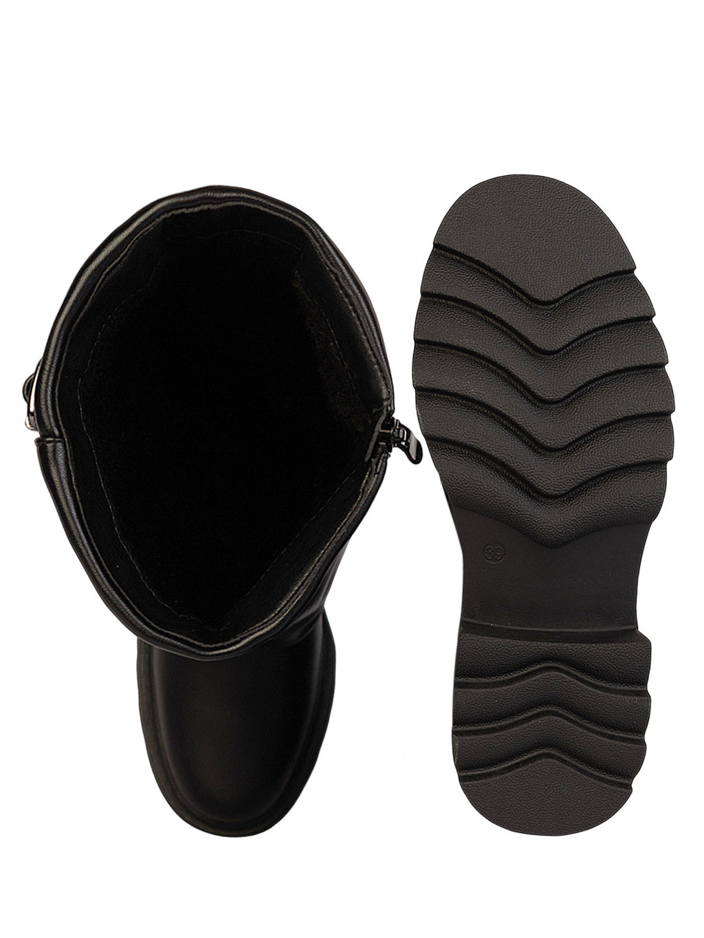 Black Synthetic Leather Winter High-End Stylish Long Boots (TC-RS35079-29-BLK)