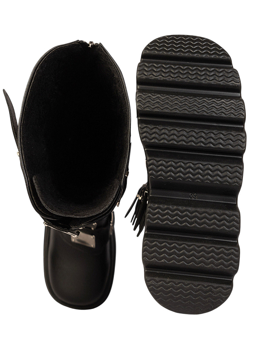Black Synthetic Leather Winter High-End Stylish Long Boots (TC-RS4010-B-BLK)