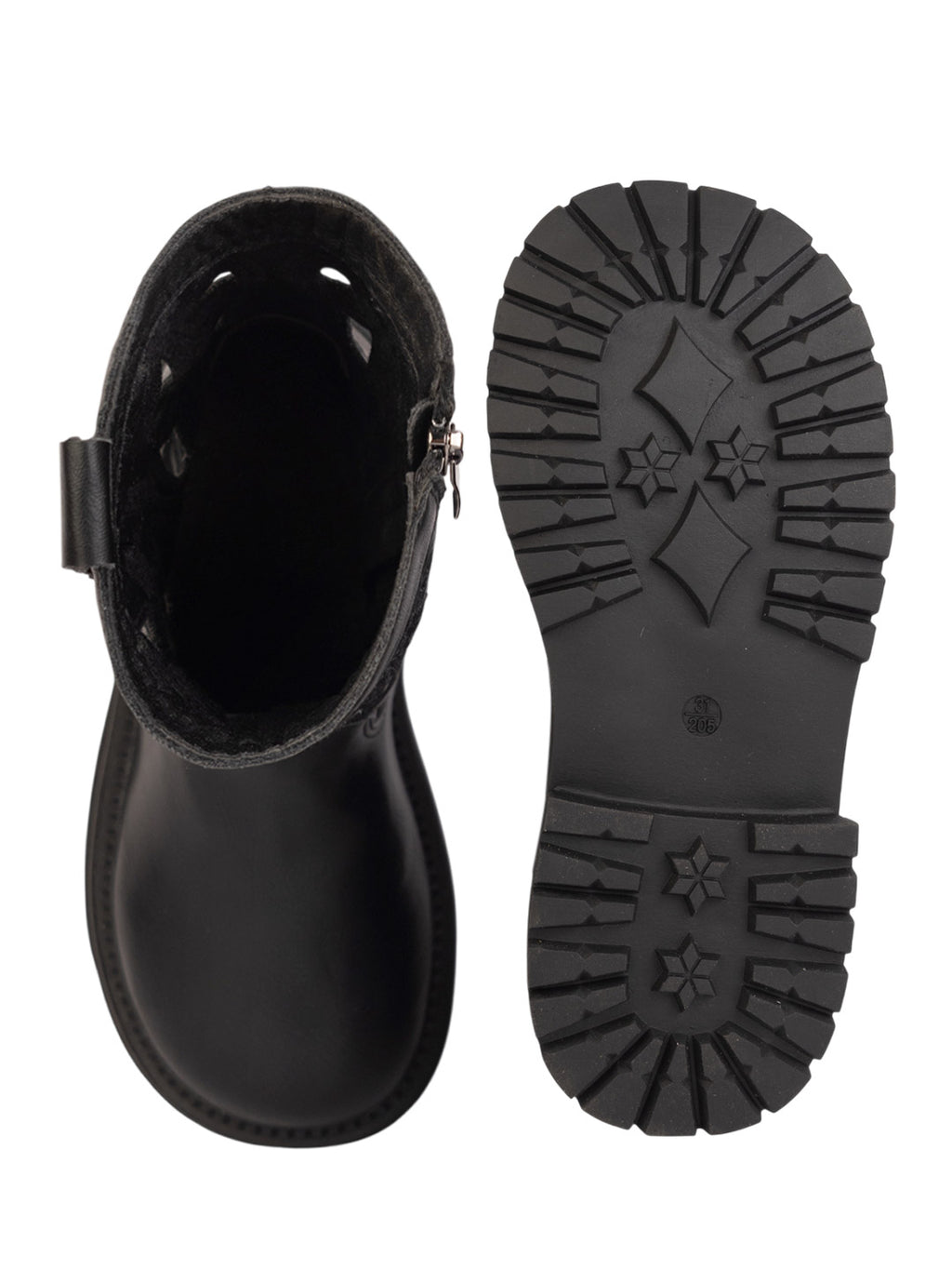 Black Synthetic Leather Winter Stylish Ankle Boots For Kids-Unisex (TC-RSXR379-BLK)