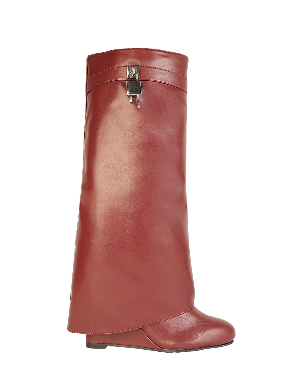 Burgundy Synthetic Leather High-End-Fashion Stylish Knee Boots (TC-RS3670-BUR)