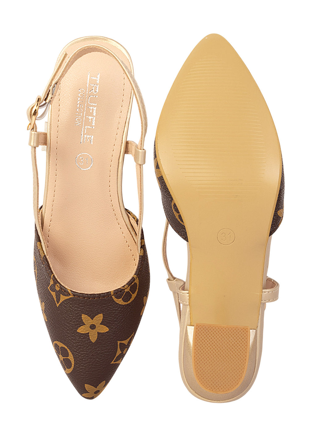 Gold Synthetic Leather Stylish Kitten Heels For Kids-Girls (TC-RS215B-GLD)