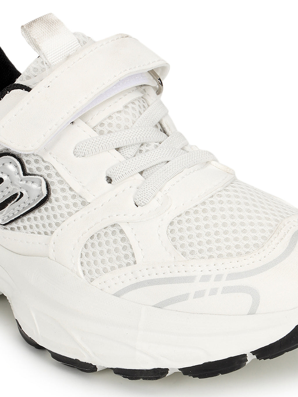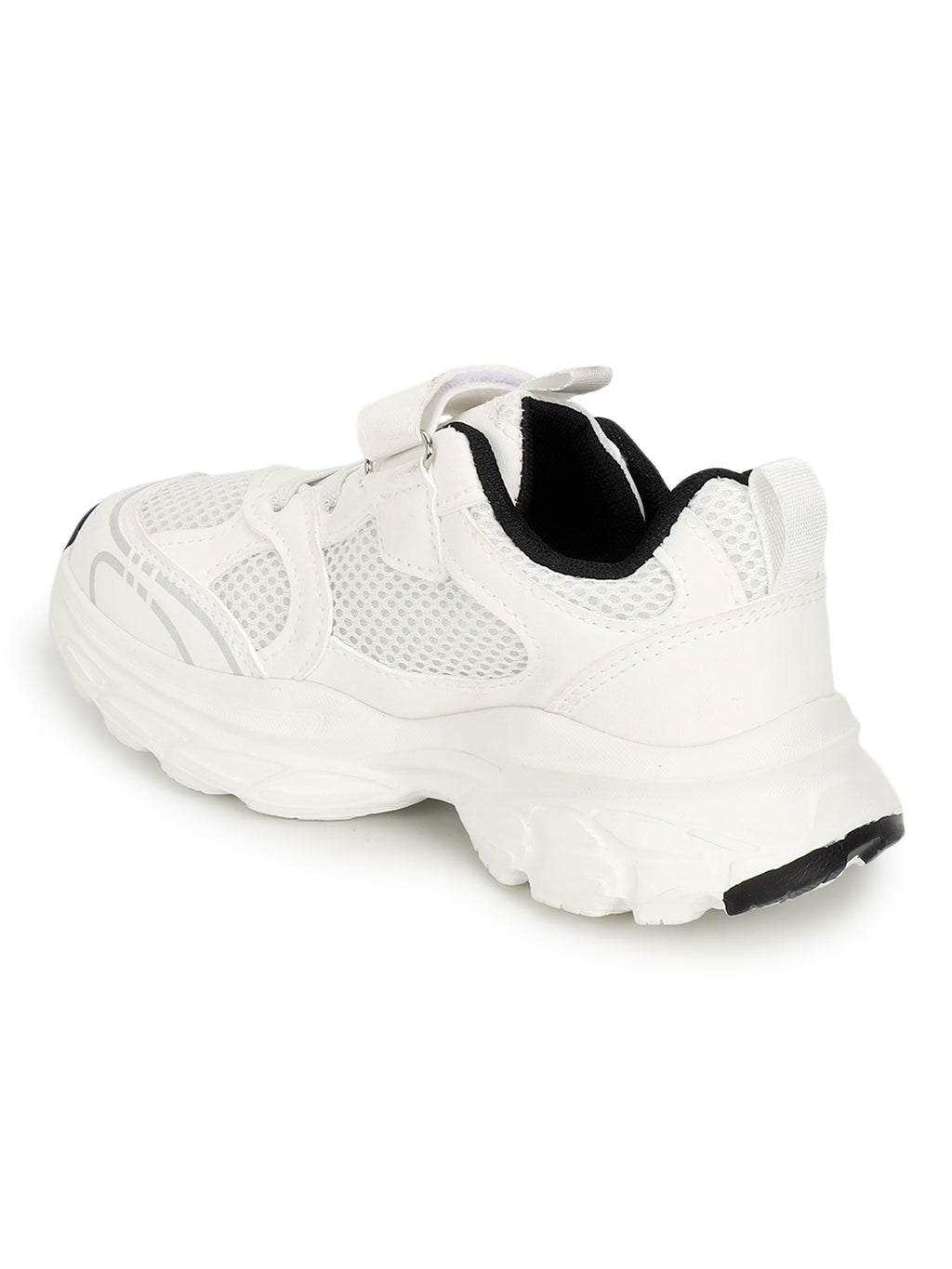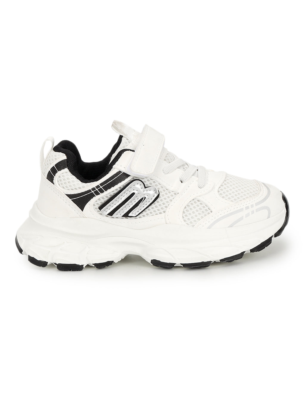 White Black Mesh Velcro Sneakers For Kids-Unisex (TC-B8819-WHTBLK)