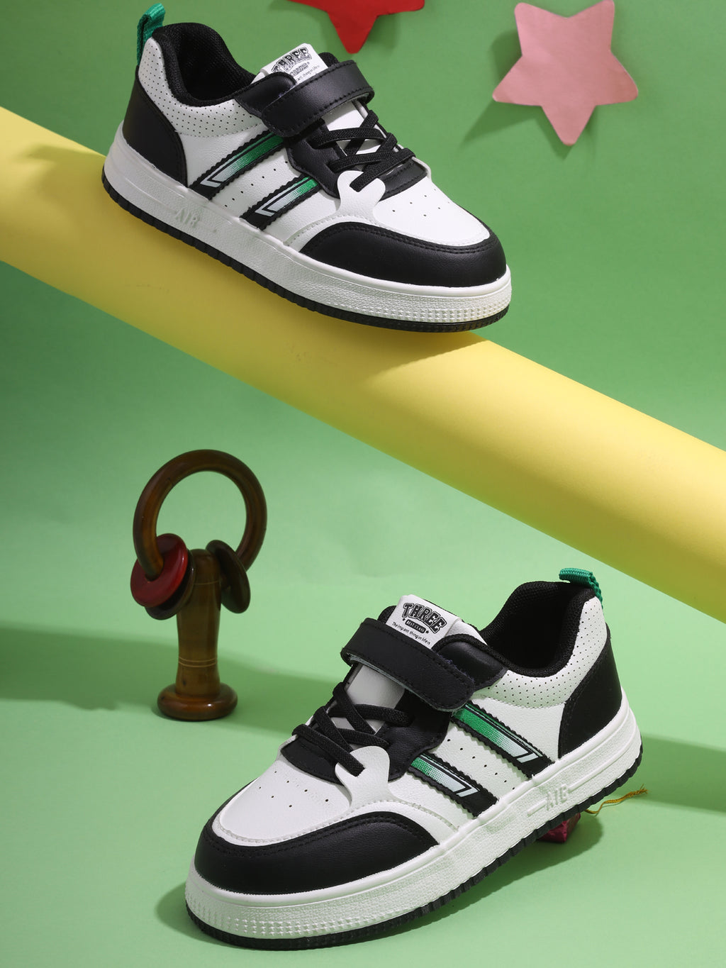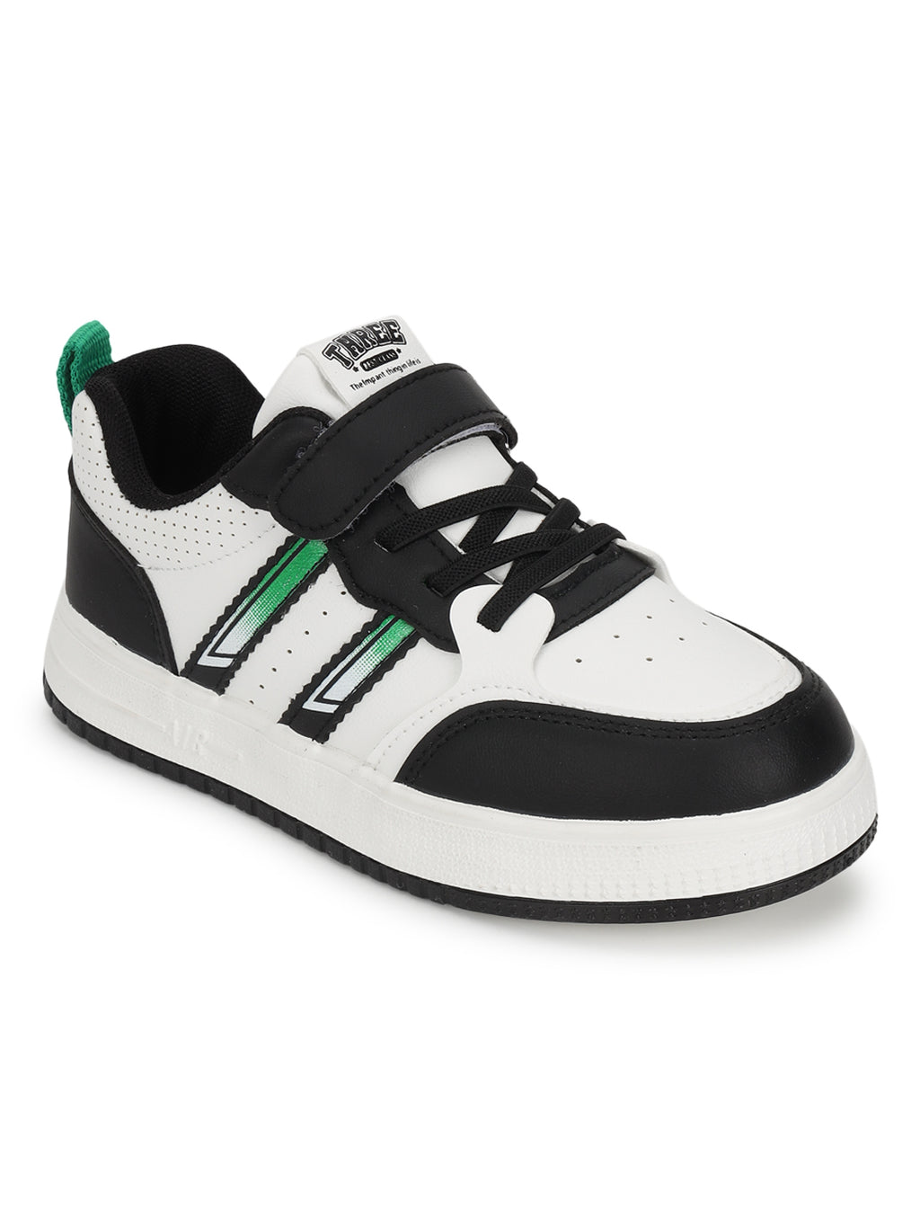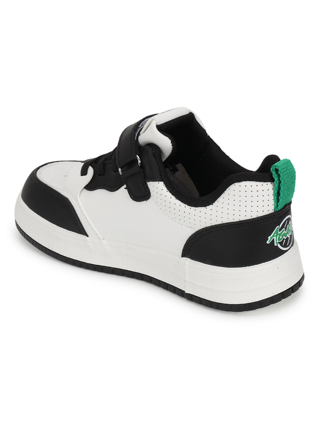 White Black PU Velcro Sneakers For Kids-Unisex (TC-B519-WHTBLK)
